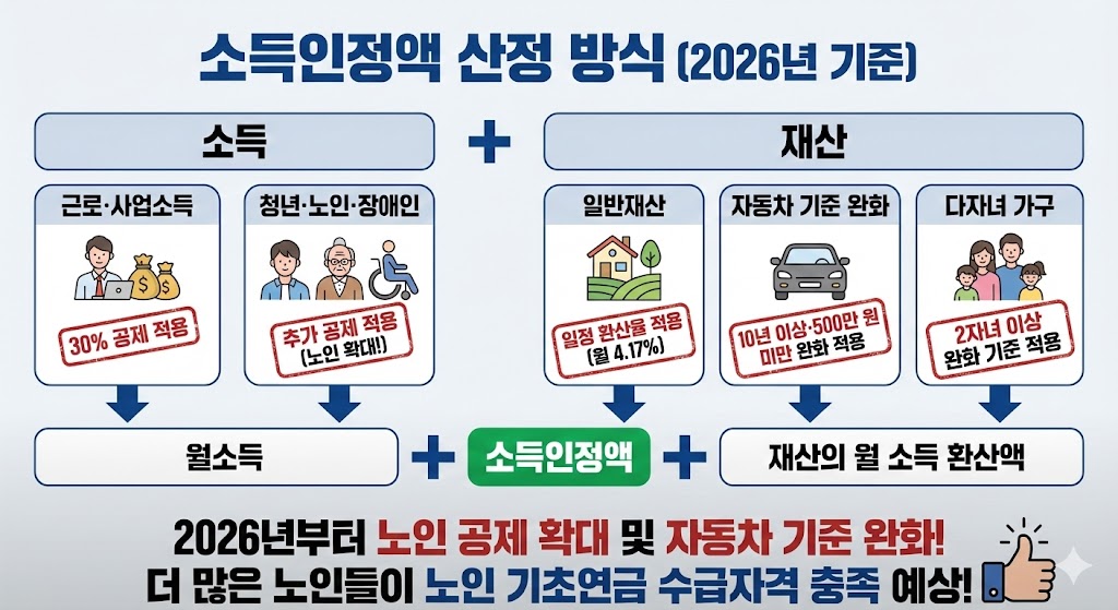 2026년부터는 노인에게도 소득공제 확대와 자동차 기준 완화가 적용되며, 이에 따라 더 많은 노인들이 노인 기초연금 수급자격을 충족할 것으로 예상됩니다.