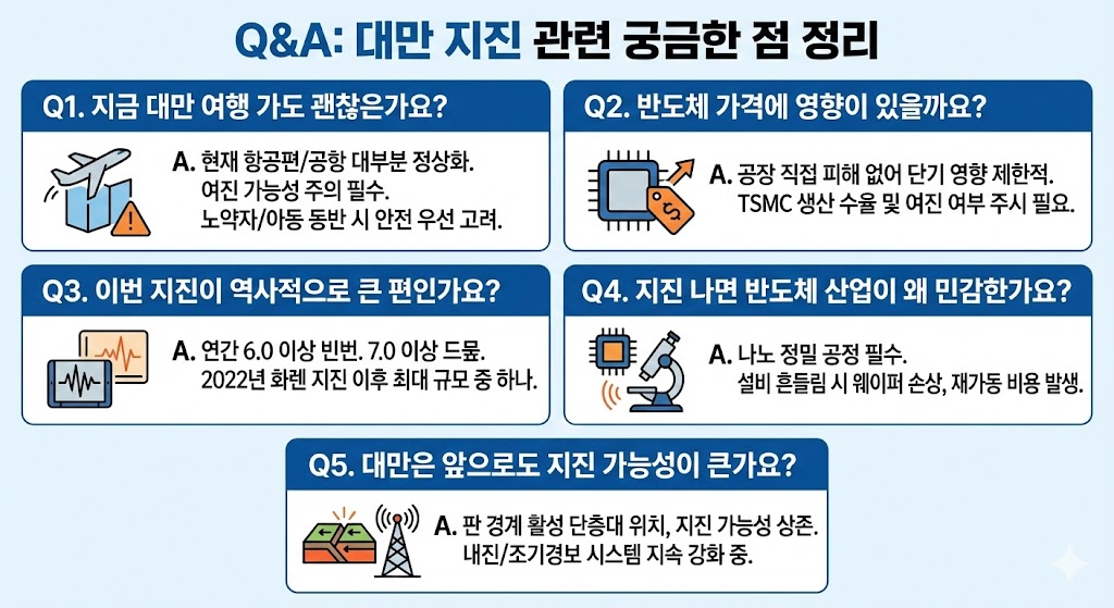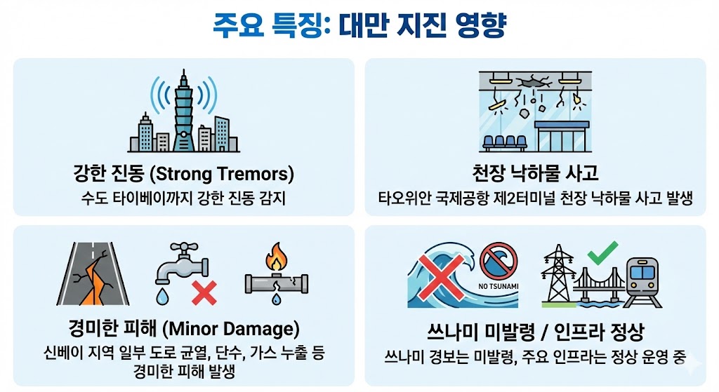 이번 **대만 지진(규모 7.0)**은 물리적 피해는 상대적으로 제한적이지만,
