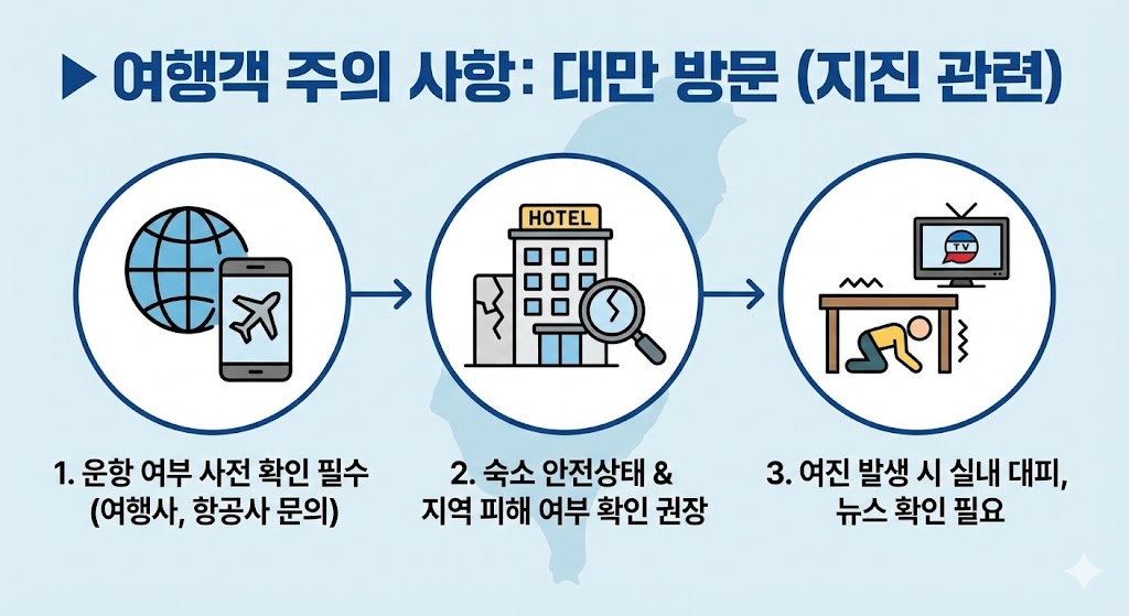 연말연시를 맞아 대만 자유여행 수요가 급증하던 시점에 지진이 발생하면서, 관광객 안전 우려와 여행 취소 문의가 증가하고 있습니다.