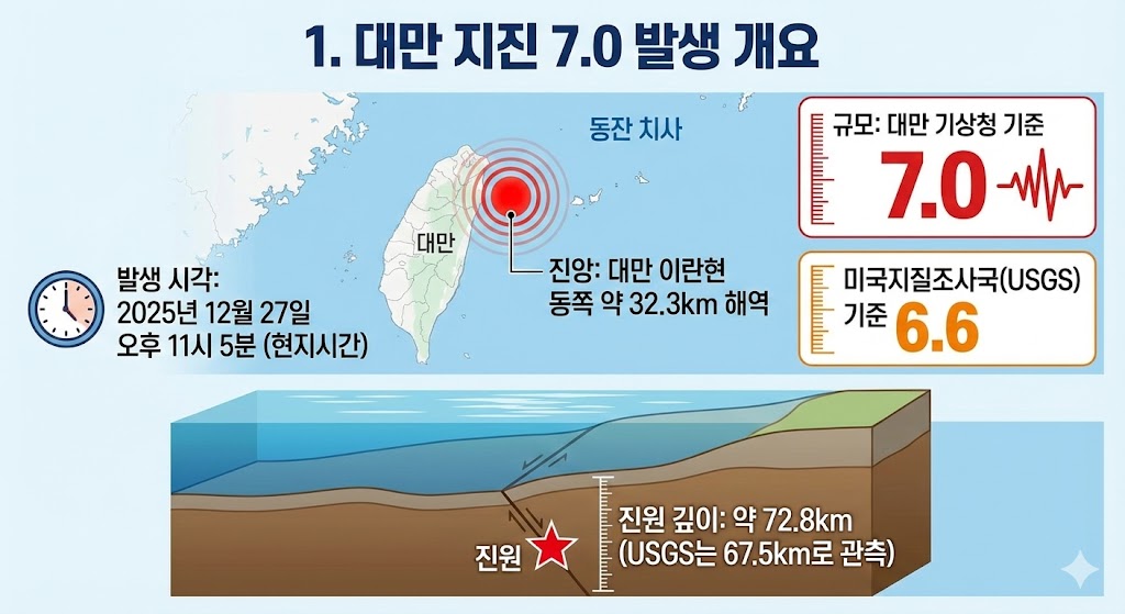 2025년 12월 27일 밤, 대만 북동부 해역에서 규모 7.0의 강진이 발생했습니다.