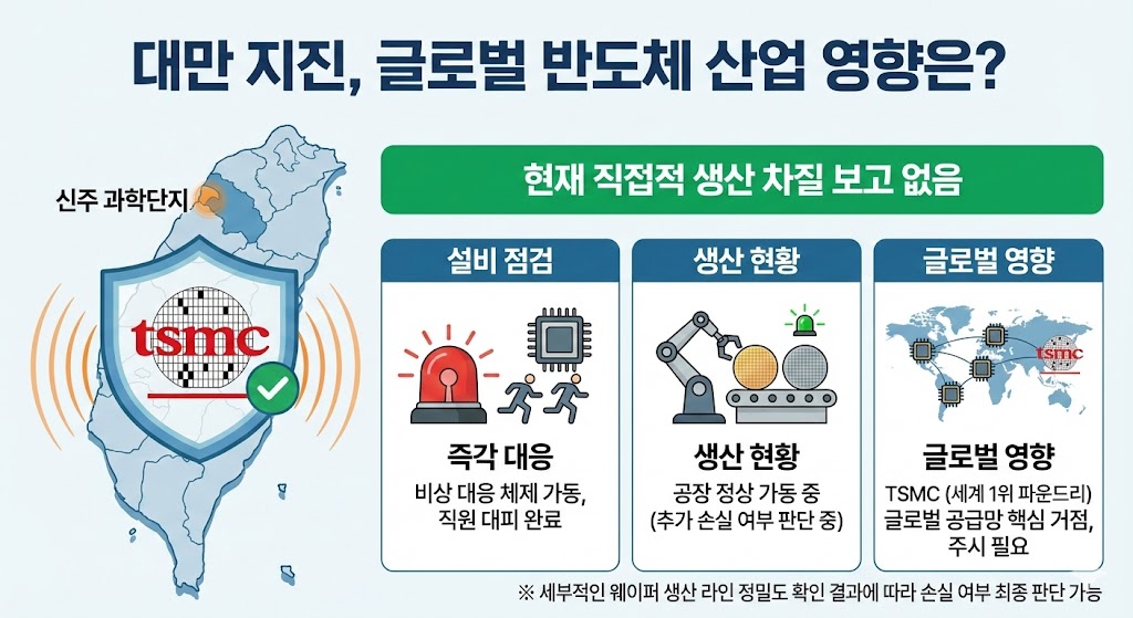 - TSMC는 지진 발생 즉시 비상 대응 체제 가동, 직원 대피 후 설비 점검