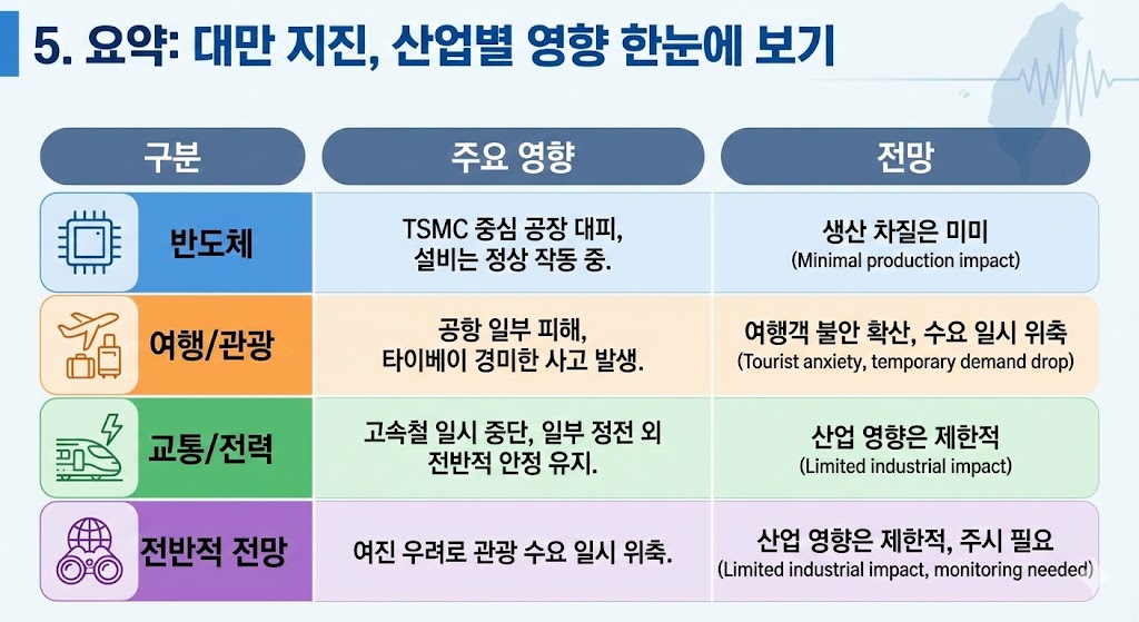 5. 대만 지진 요약: 산업별 영향 한눈에 보기
