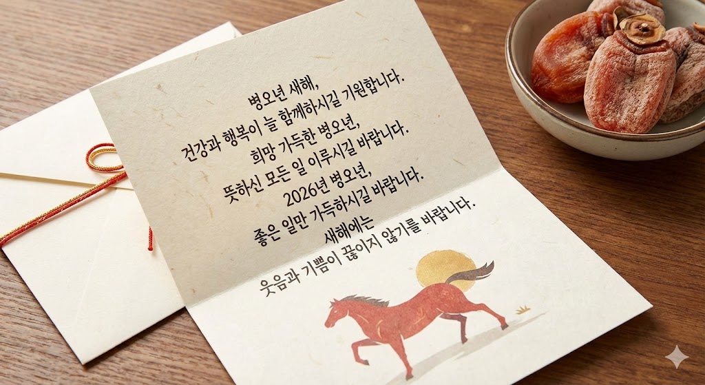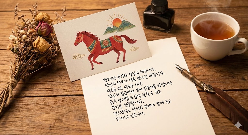 → ‘병오년’의 의미를 이해하고, 관련 키워드(도전, 활력 등)를 적절히 넣으면 진심이 더 잘 전달됩니다.