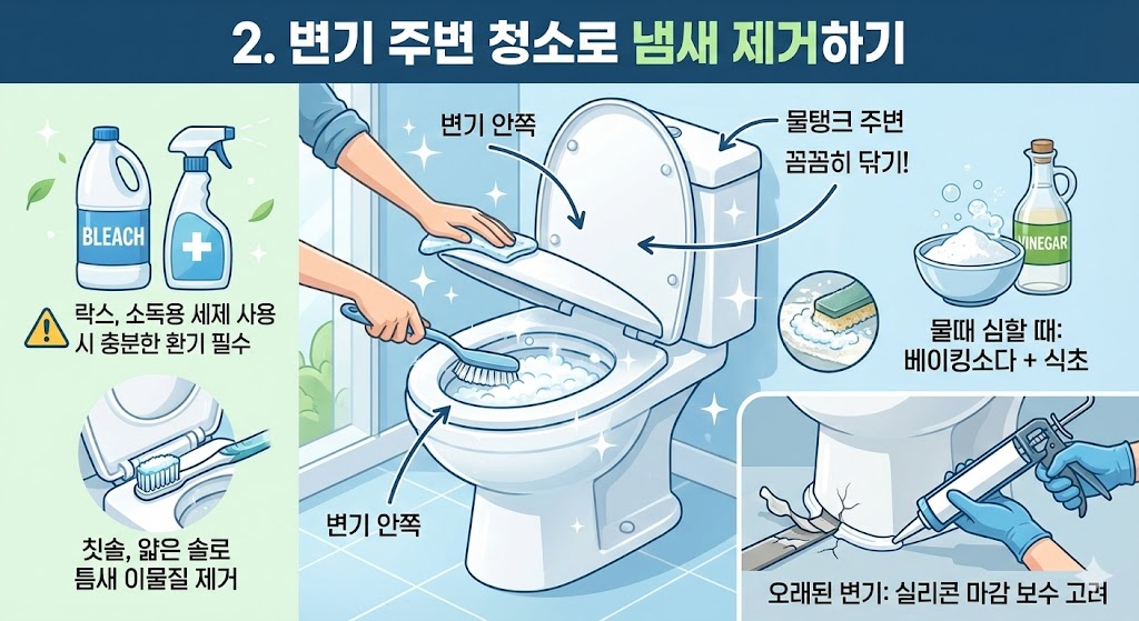 2. 변기 주변 청소로 냄새 제거하기